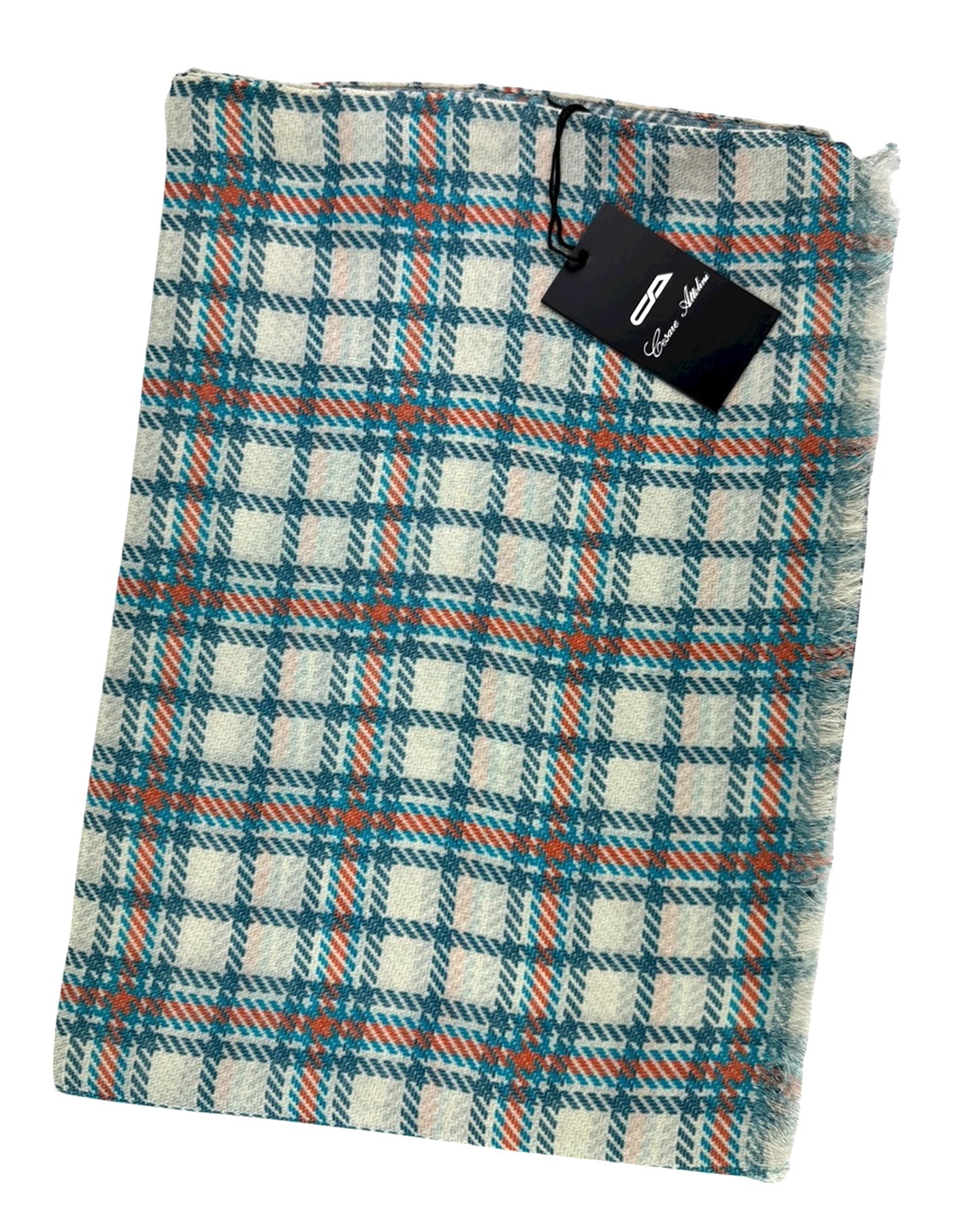 - BLACK FRIDAY SALE - Genuine Attolini scarf, forest green plaid check with orange detail, short eyelash fringe, fancy lightweight cotton cashmere, made in Italy. Cesare Attolini: sartorial quality men designer shawls and scarves, men collection at outlet prices. Shop discount Attolini scarves.