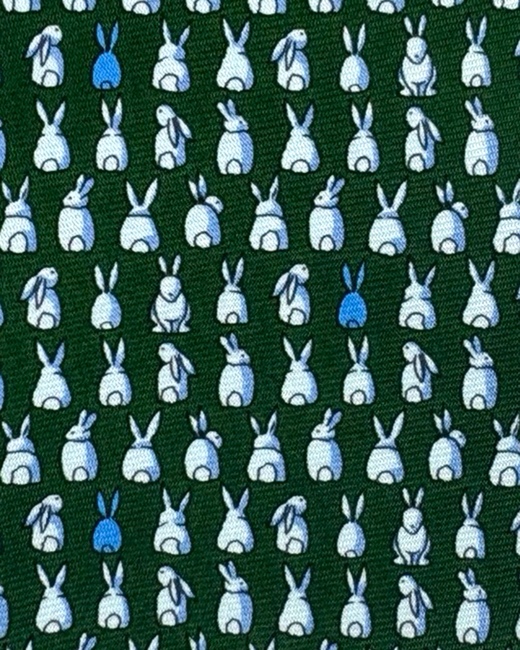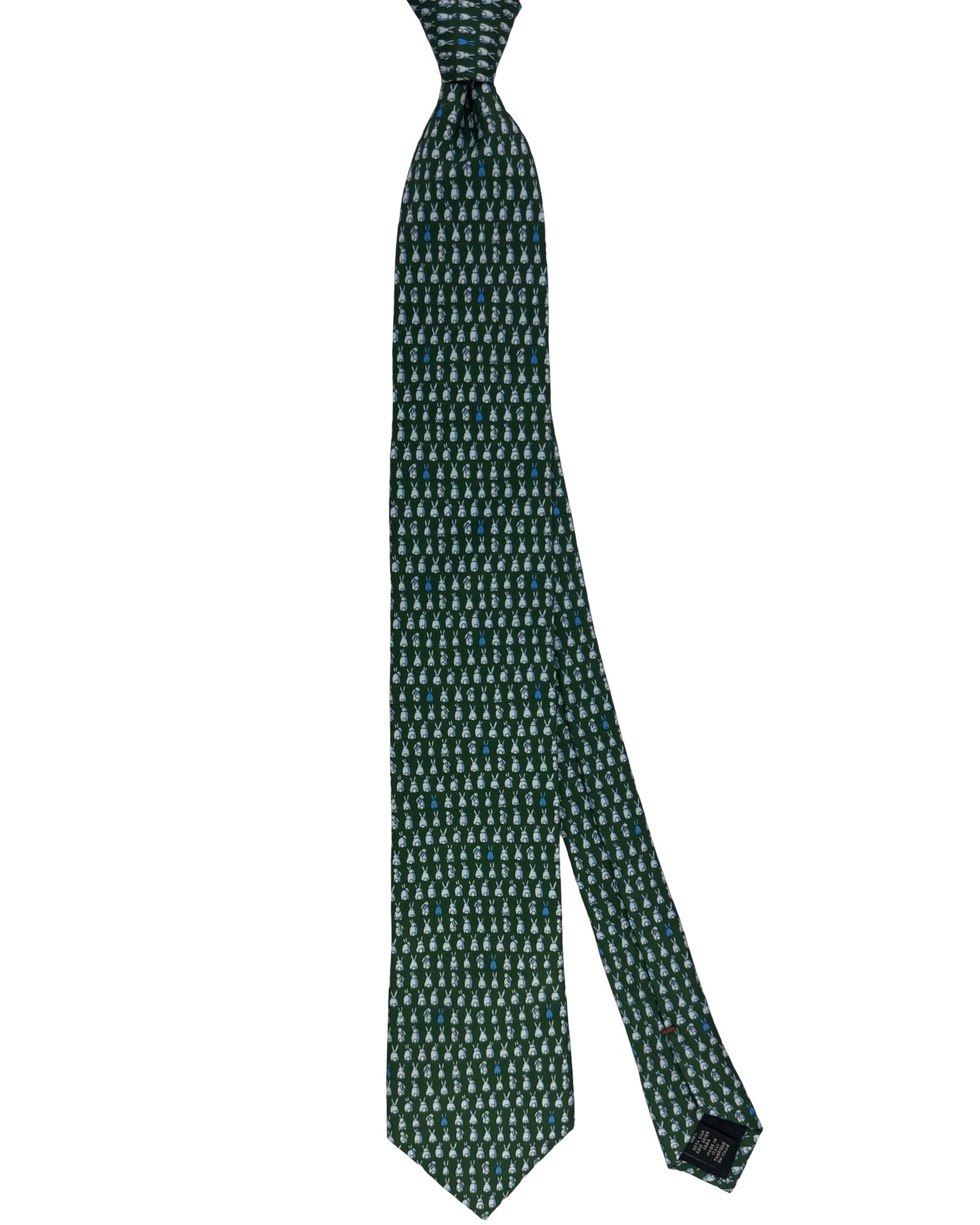 Fun novelty tie, top quality! Genuine Ermenegildo Zegna silk tie, playful repeating rabbit motif in white with subtle blue accents, printed silk, hand made in Italy. Authentic Ermenegildo Zegna ties, designer men collection at outlet prices. Shop luxury novelty ties.