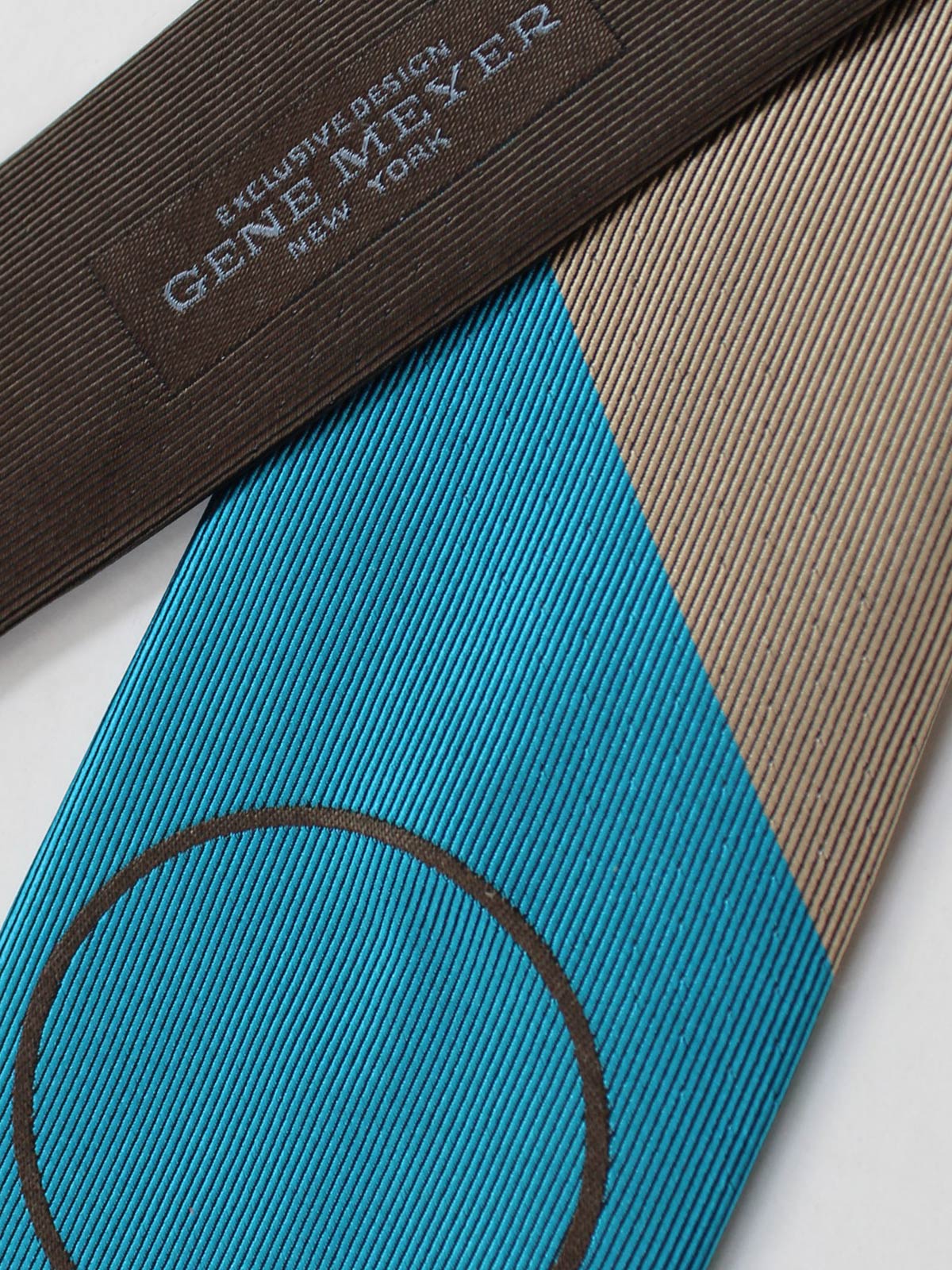 - SALE -  Gene Meyer necktie with brow aqua cream large dot circle design, 100% silk, hand made in Italy. Gene Meyer New York. Cool neckties. View all Gene Meyer Socks/ Ties & Bow Ties | Men Designer Socks.