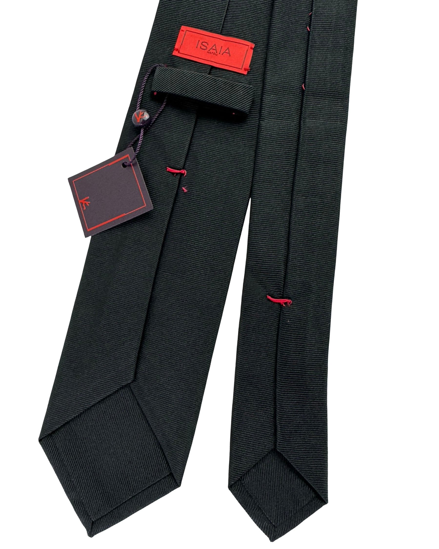 Genuine Isaia tie, black grosgrain solid, silk, hand made in Italy. Isaia Napoli men clothes, hand made in Italy, sartorial quality. Isaia men collection at outlet prices.