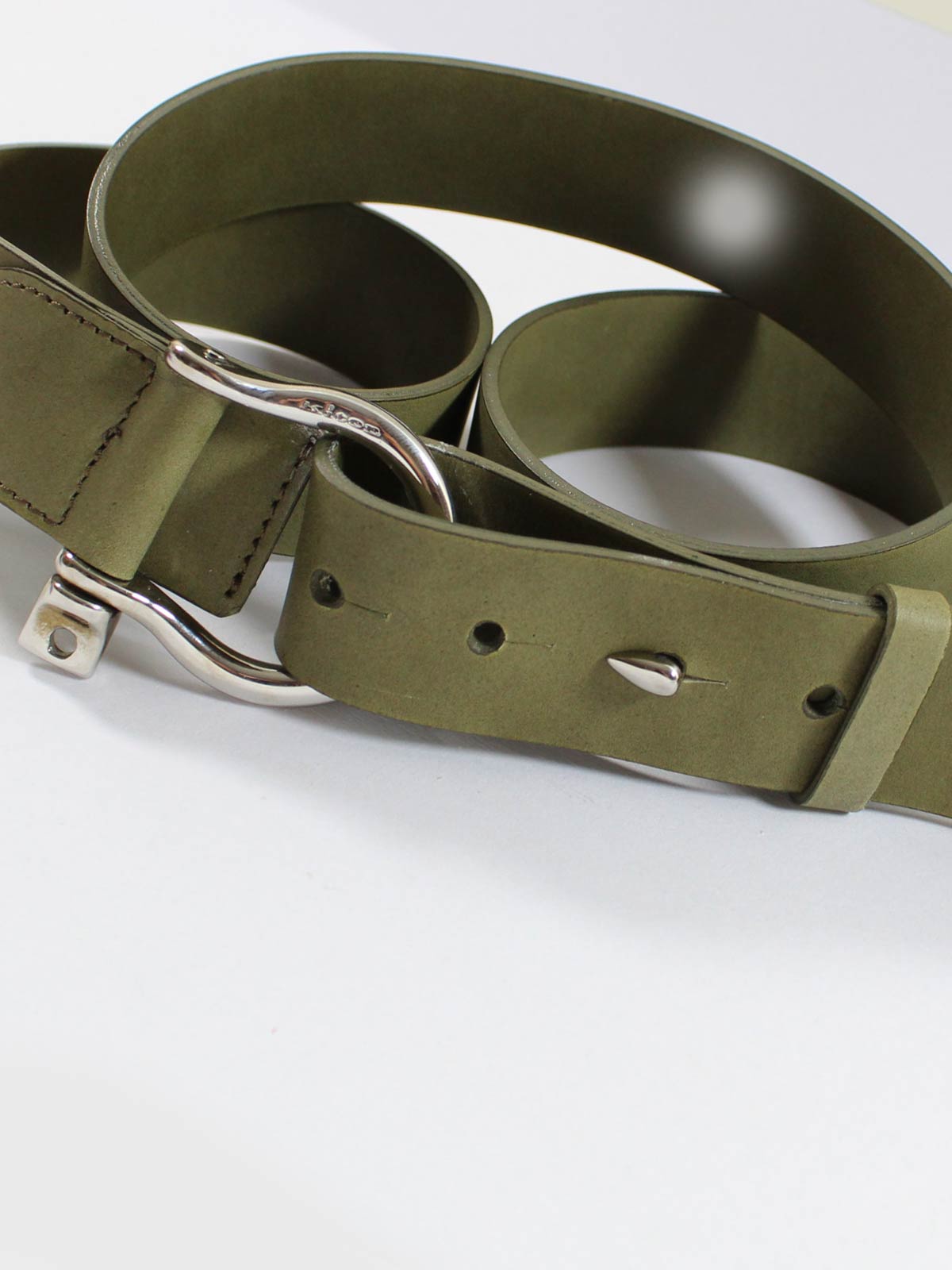 SALE: Genuine Kiton belt, military green with silver tone buckle, hand made in Italy. Kiton Napoli men's collection. Discount sartorial hand made belts.