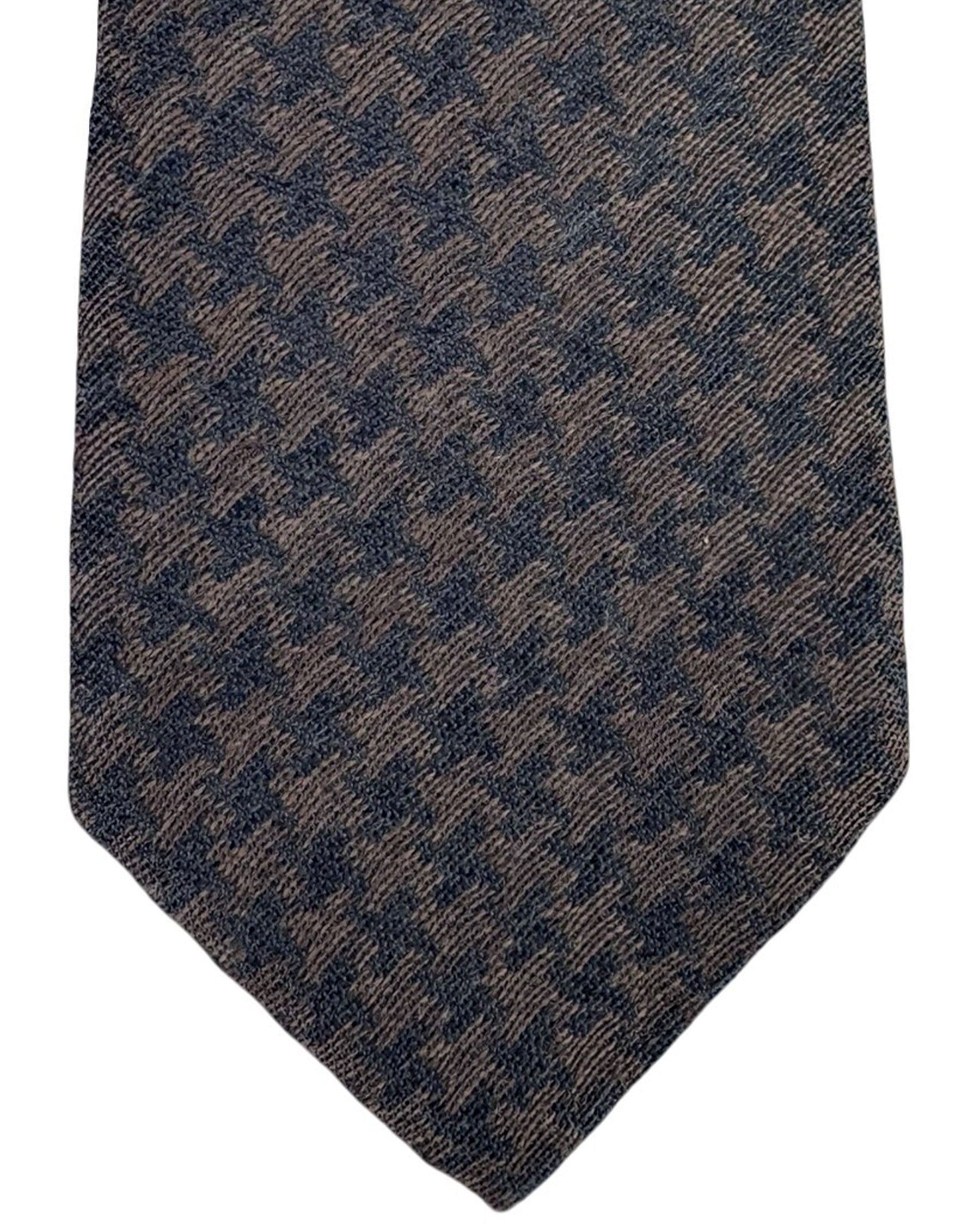 Genuine Armani tie with brown/ black houndstooth, wool/ silk, hand made in Italy. Luxury Armani Collezioni men collection online. Discount men designer ties.