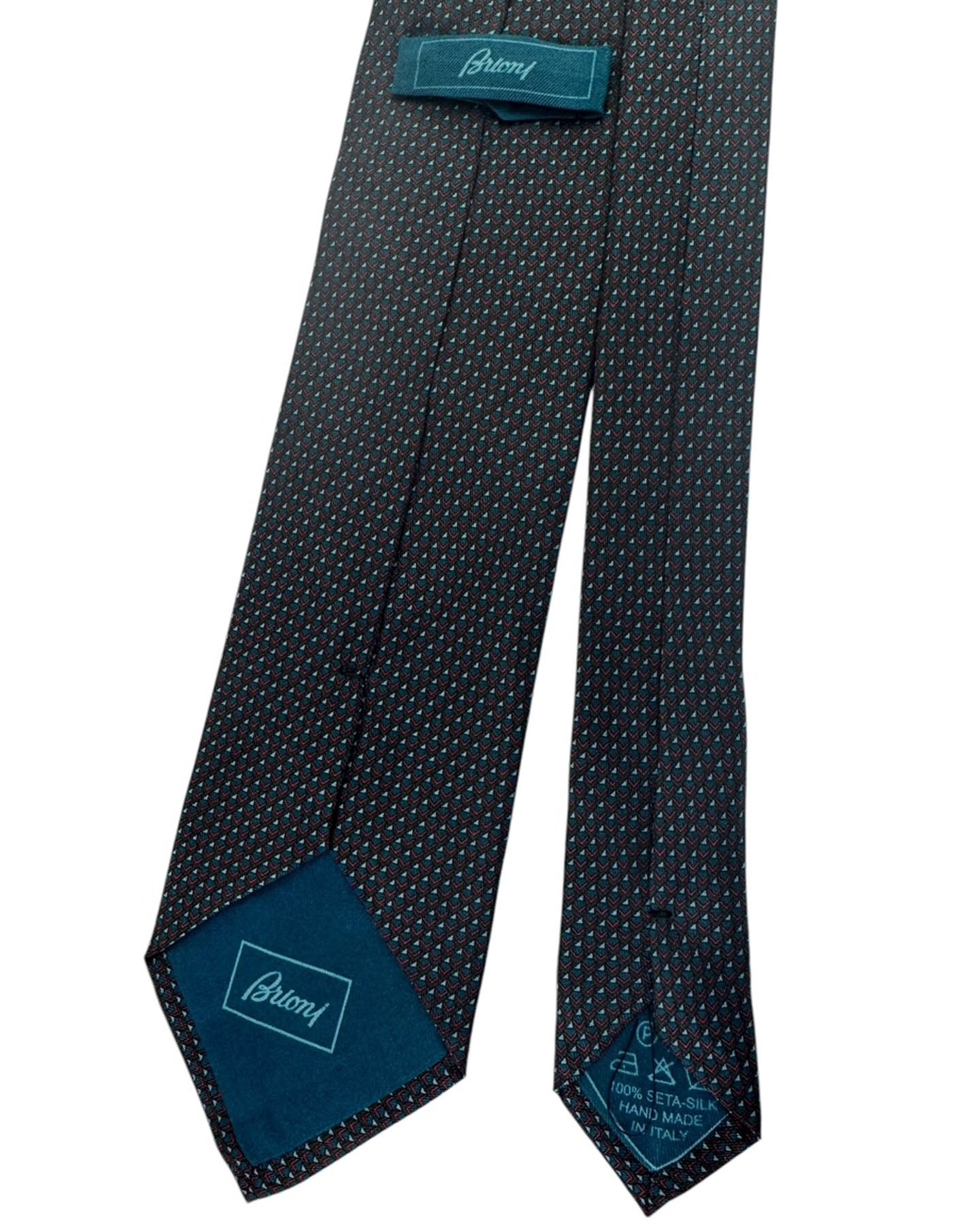 Brioni Silk Tie Black Teal Red Micro Geometric Design