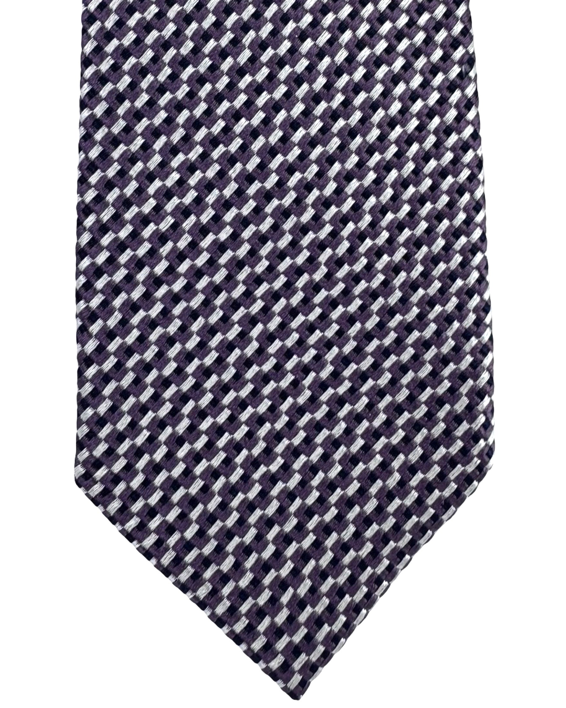 Genuine Ermenegildo Zegna silk tie, plum purple silver pattern, narrow cut, jacquard silk, hand made in Italy. Authentic Ermenegildo Zegna ties, luxury designer men collection at outlet prices.
