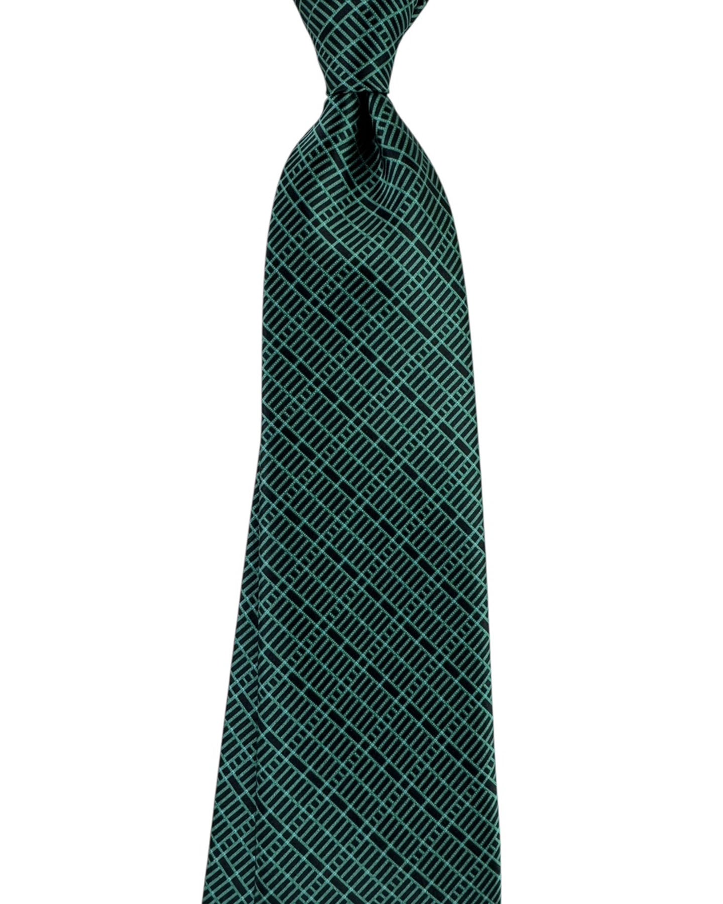 Authentic Stefano Ricci tie, printed silk, green lattice design over a deep black background, silk, hand made in Italy. Genuine Stefano Ricci ties at outlet prices. Luxury men designer ties and accessories.