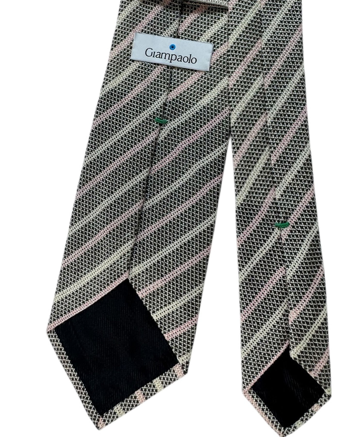 Great deal, sartorial quality! Authentic Giampaolo tie, dark blue/ pink stripes, jacquard silk, self tipped, hand made in Italy. Genuine Giampaolo men collection accessories online at outlet prices.