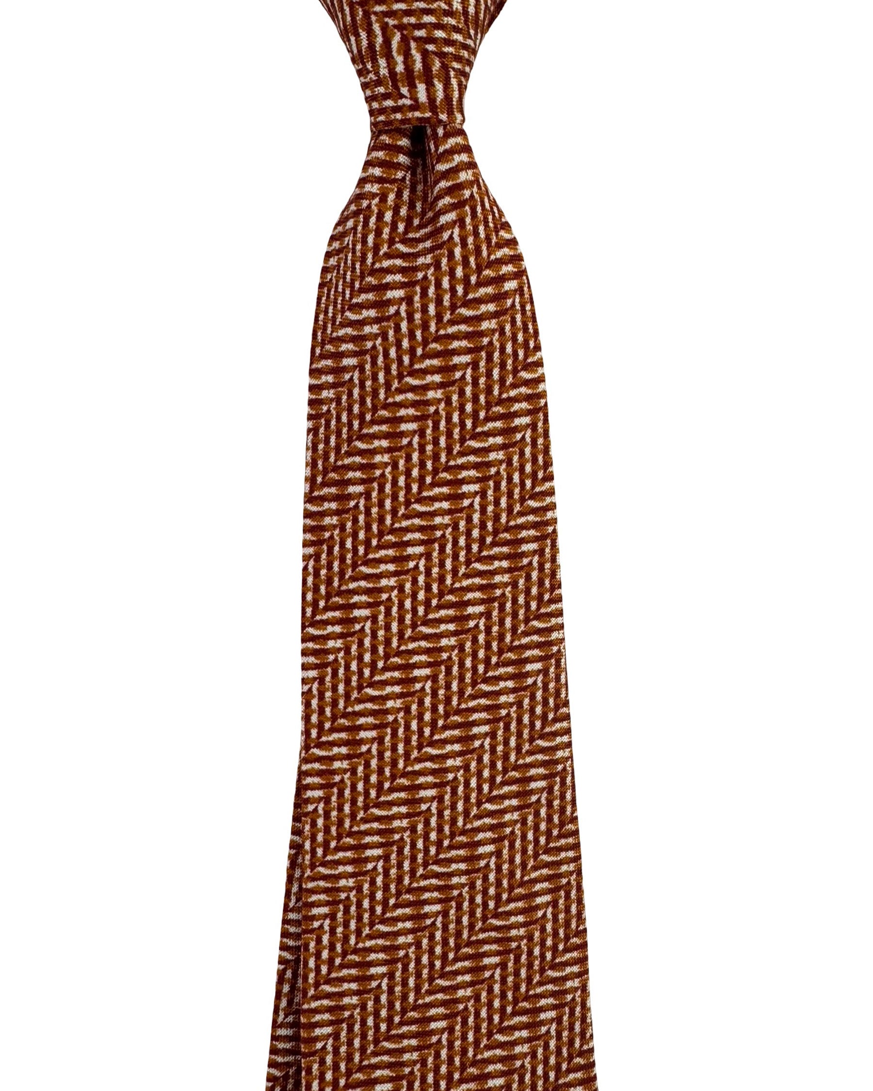 Genuine Isaia tie, white brown herringbone, sevenfold construction, hand made in Italy. Authentic Isaia Napoli men clothes, sartorial quality. Isaia men collection at outlet prices.