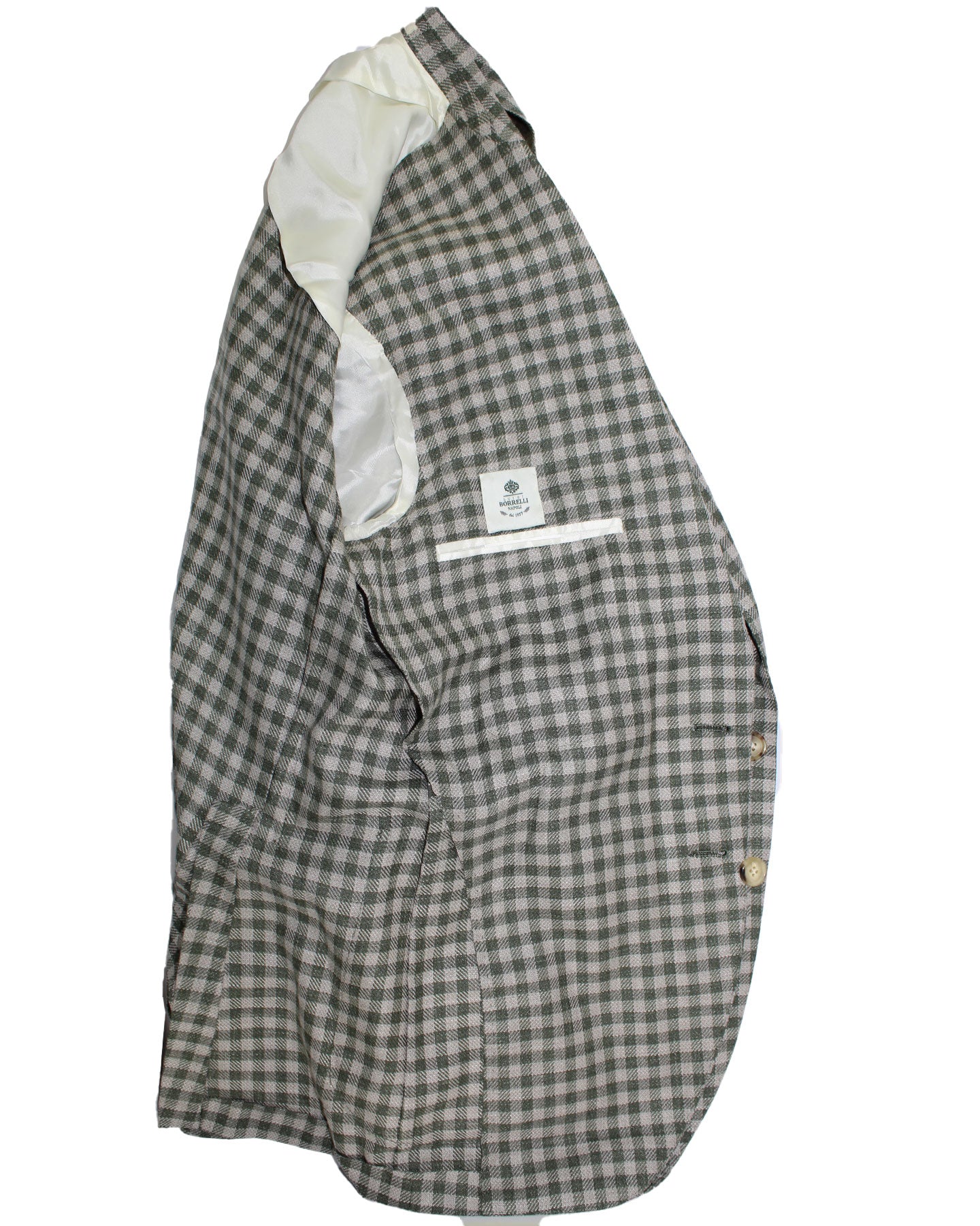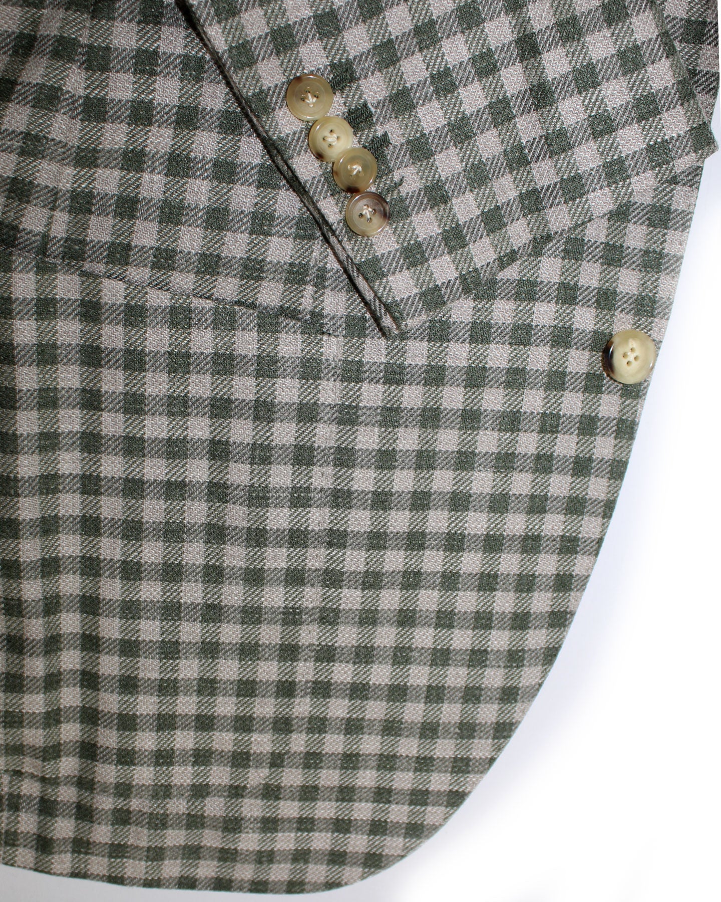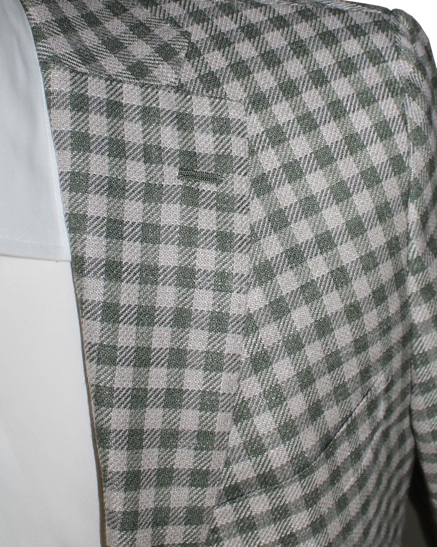 - SALE - Genuine Luigi Borrelli sport coat, green gray check design, wool/ silk/ linen, unlined , inseam pockets, 3 button cuffs (functional), notch lapel, sartorial, hand made in Italy. Sartorial quality men sport jackets and suits by Luigi Borrelli. Shop Bespoke Sport Coats.