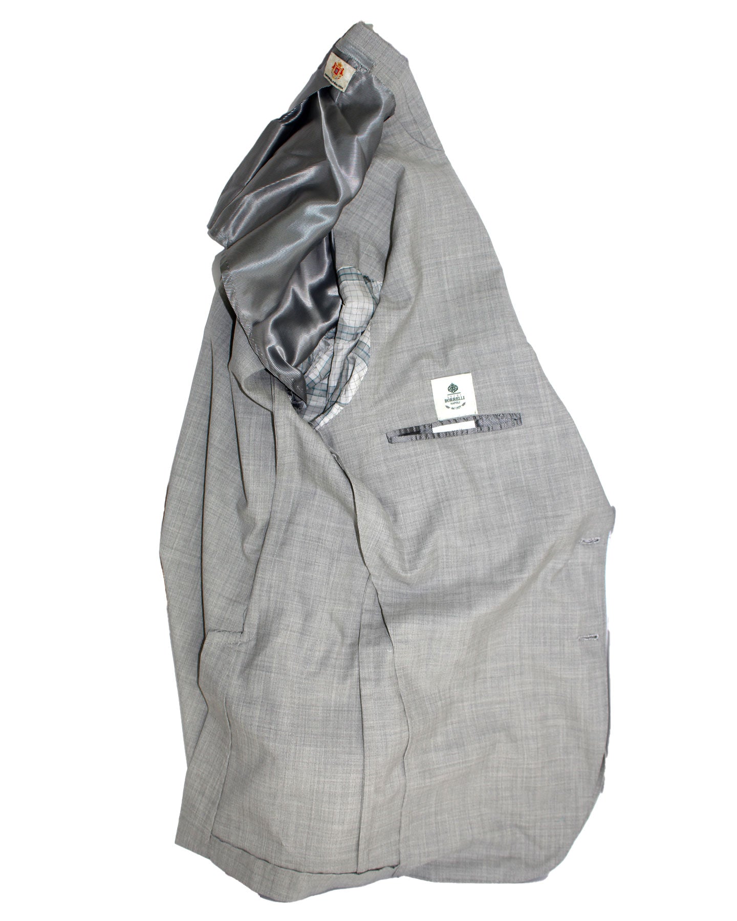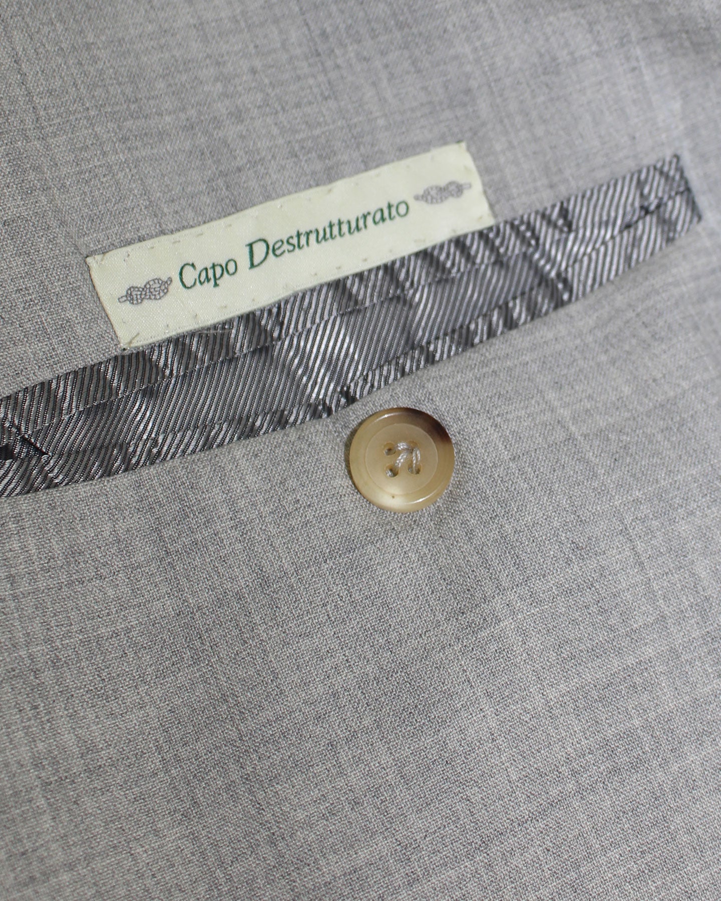 Genuine Luigi Borrelli suit, 'Capo Destrutturato' gray design, wool/ silk, unlined blazer, bucket pockets, notched lapel, flat front pants, sartorial, hand made in Italy. Sartorial quality men sport jackets, blazers and suits by Luigi Borrelli. Shop Bespoke Sport Coats.