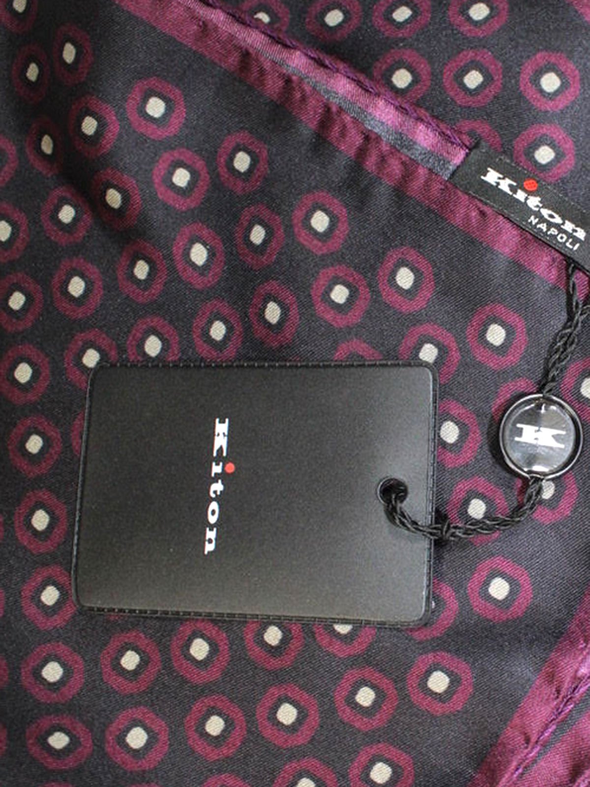 - BLACK FRIDAY SALE - Genuine Kiton silk pocket square, Black / Purple Geometric design, hand stitched edges, made in Italy. Kiton Napoli, sartorial men's clothing and accessories. Discount designer pocket squares/ hankies for men.