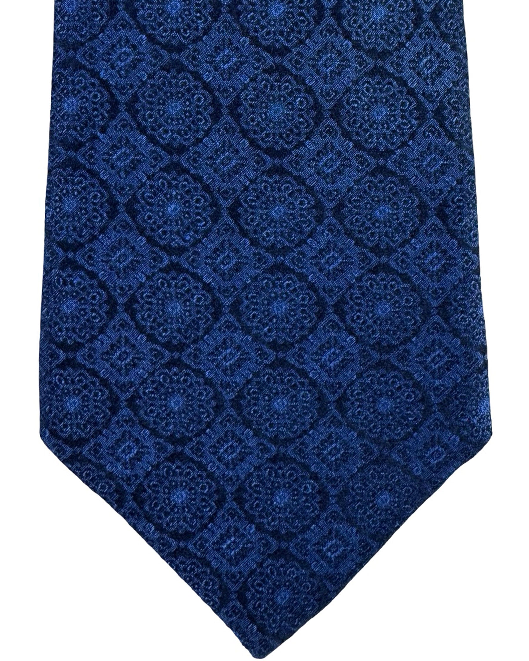 New Collection: Genuine Etro tie, dark blue navy medallion, jacquard silk, hand made in Italy. Authentic Etro men collection, luxury fashion accessories, made in Italy. Discount men designer neckties.