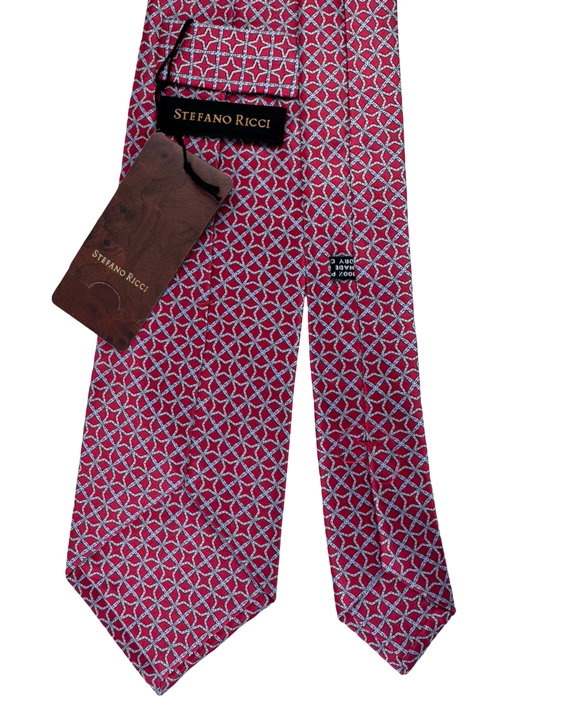 Stefano Ricci Tie Red Gray Lattice Geometric Pattern