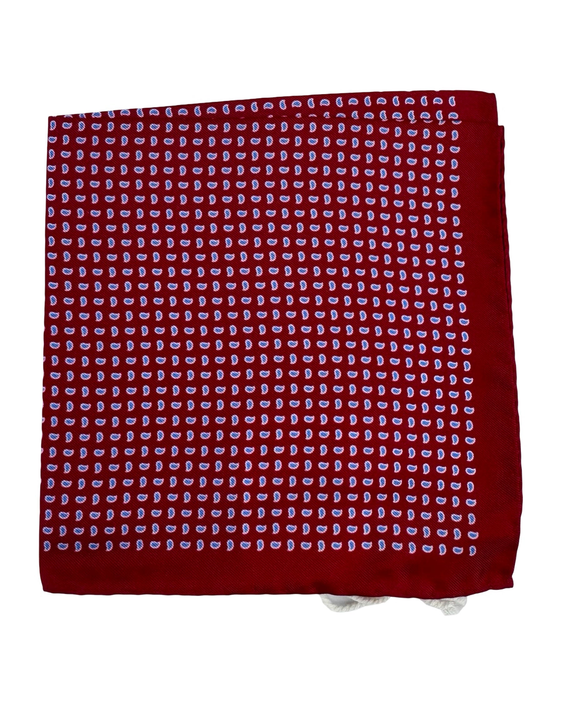 Authentic Luigi Borrelli pocket square, red mini paisley, silk, hand made in Italy. Genuine Luigi Borrelli men's collection. Luxury designer pocket squares/ hankies for men.