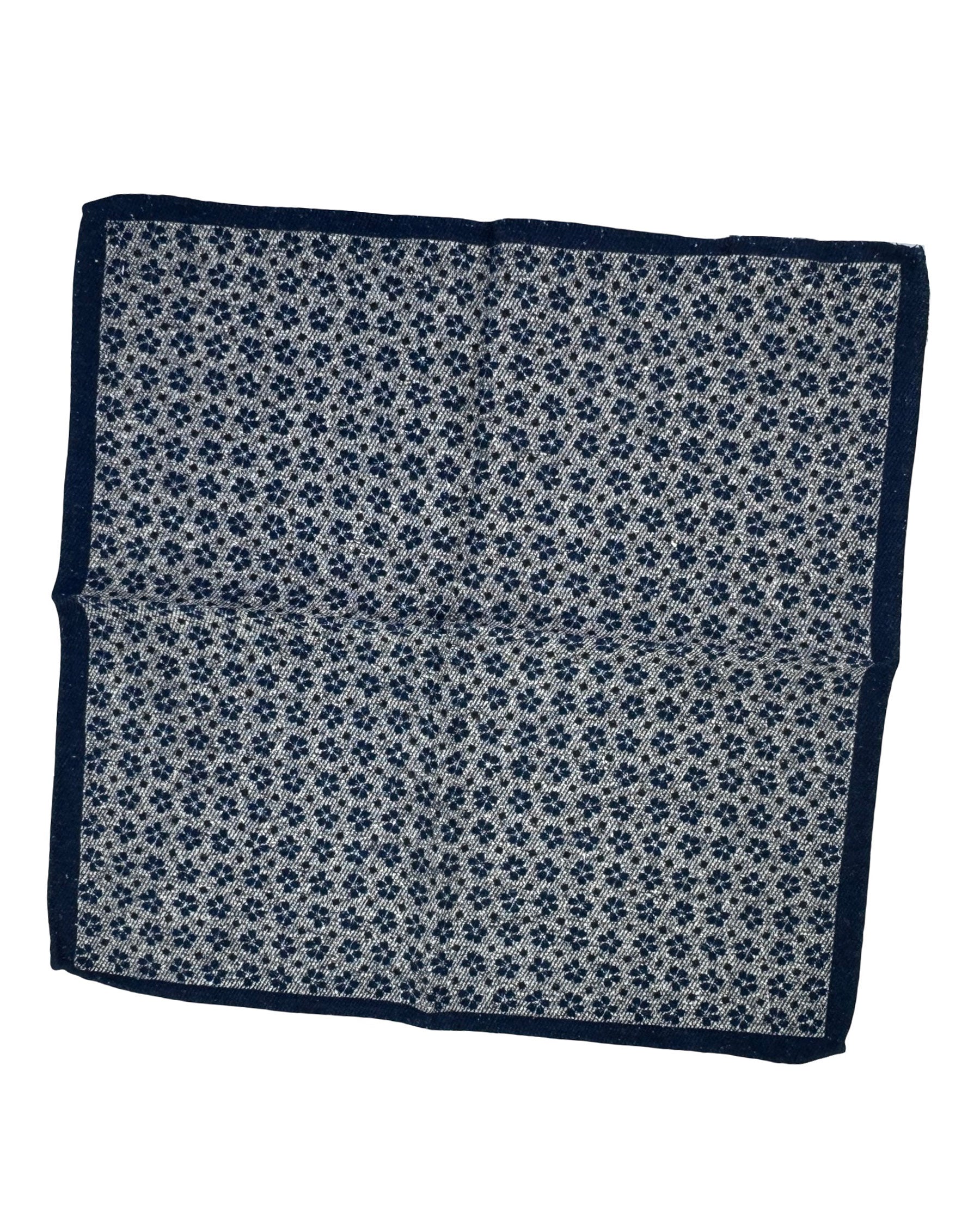 Authentic Luigi Borrelli pocket square, navy gray design, cotton/ silk, hand made in Italy. Genuine Luigi Borrelli men's collection. Designer pocket squares/ hankies for men.