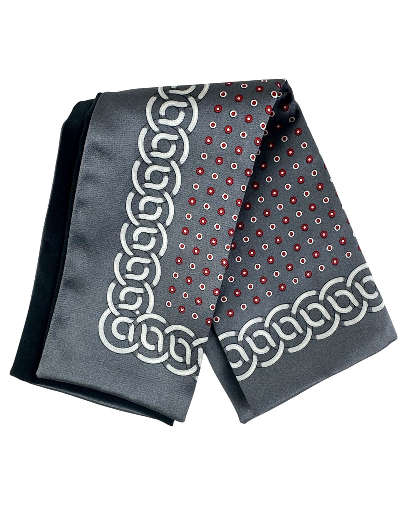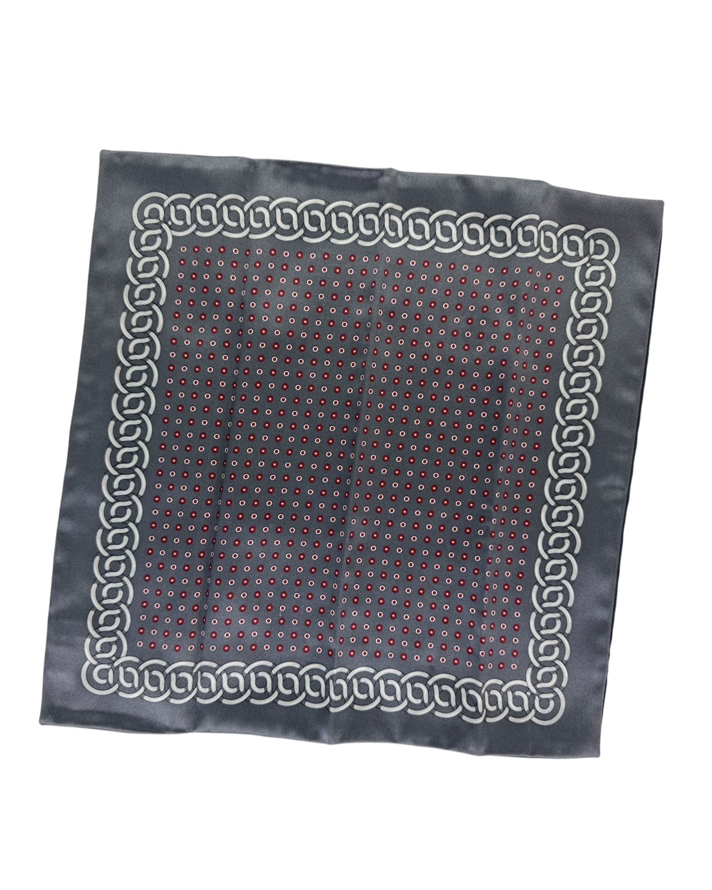 SALE - Authentic Zilli pocket square, Gray Bordeaux Silver design, silk, hand made in Italy. Zilli Paris, luxury men accessories at outlet prices. Luxury men hankies/ pocket squares.