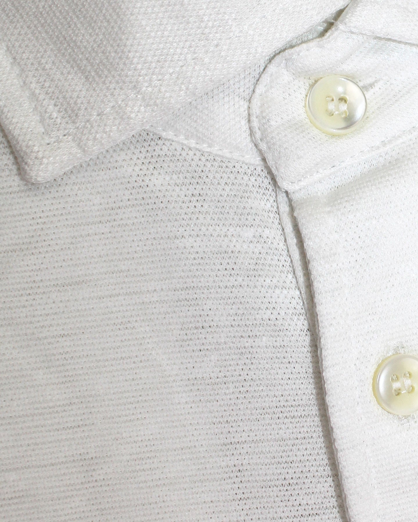 SALE - Summer Collection: Authentic Luigi Borrelli polo shirt, 3 button, long sleeve, modern fit, white, light weight linen/ cotton, made in Napoli, Italy. Shop the sartorial dress shirts, polo shirts and ties of the Luigi Borrelli men collection.