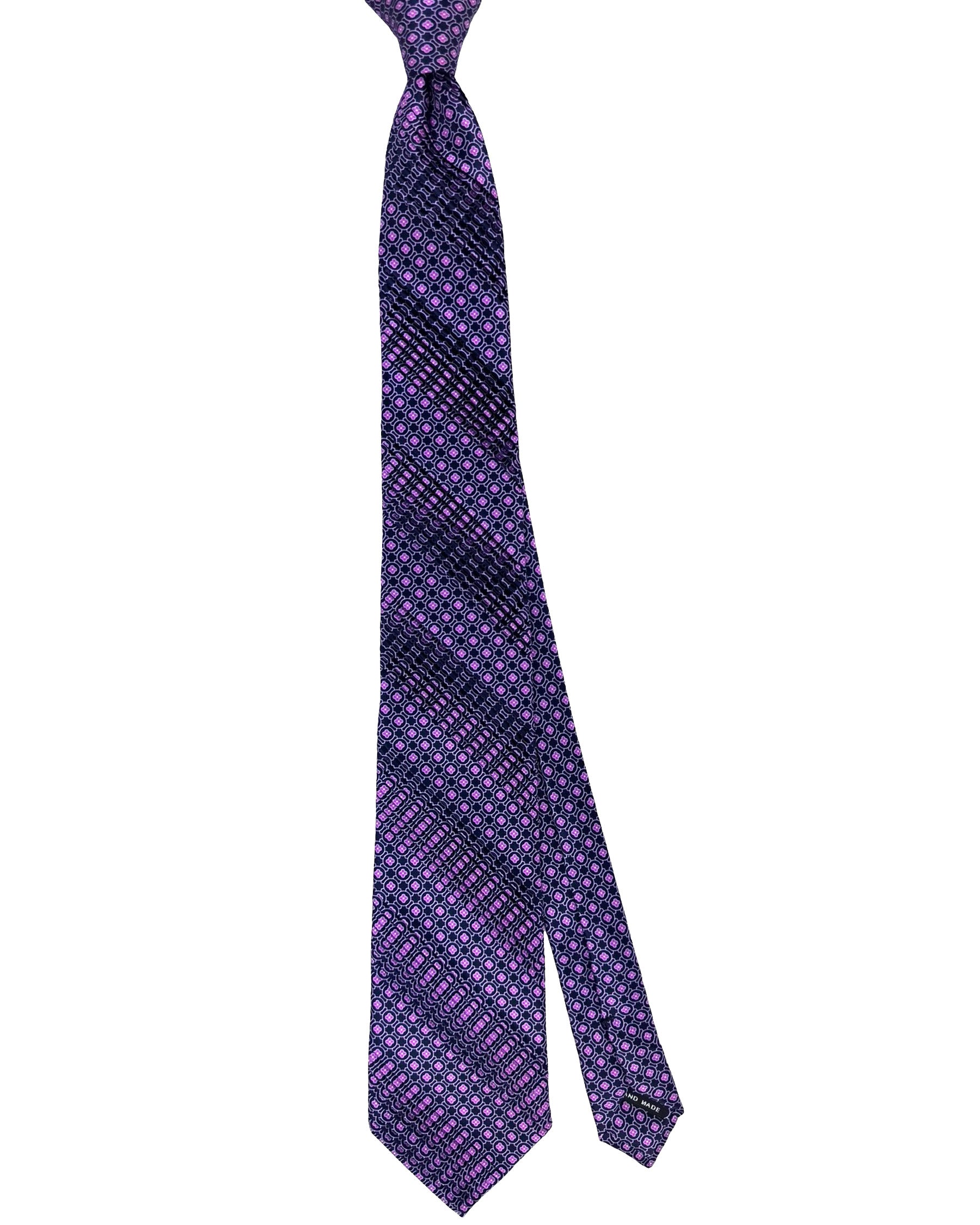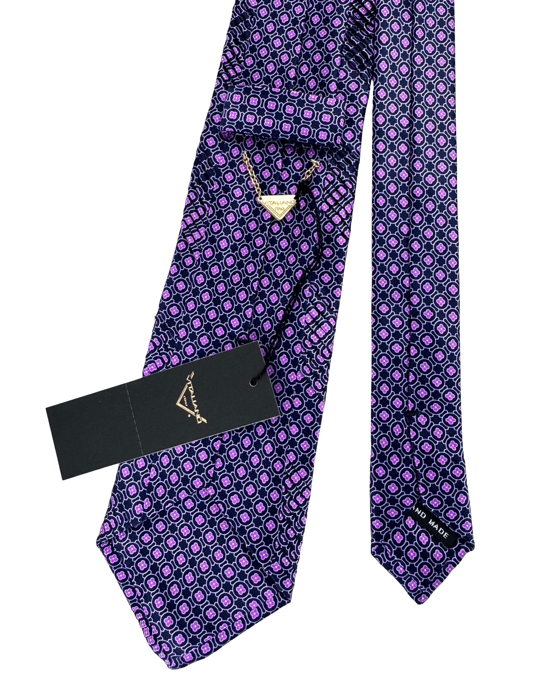 Vitaliano Pancaldi Pleated Silk Tie Purple Geometric Design