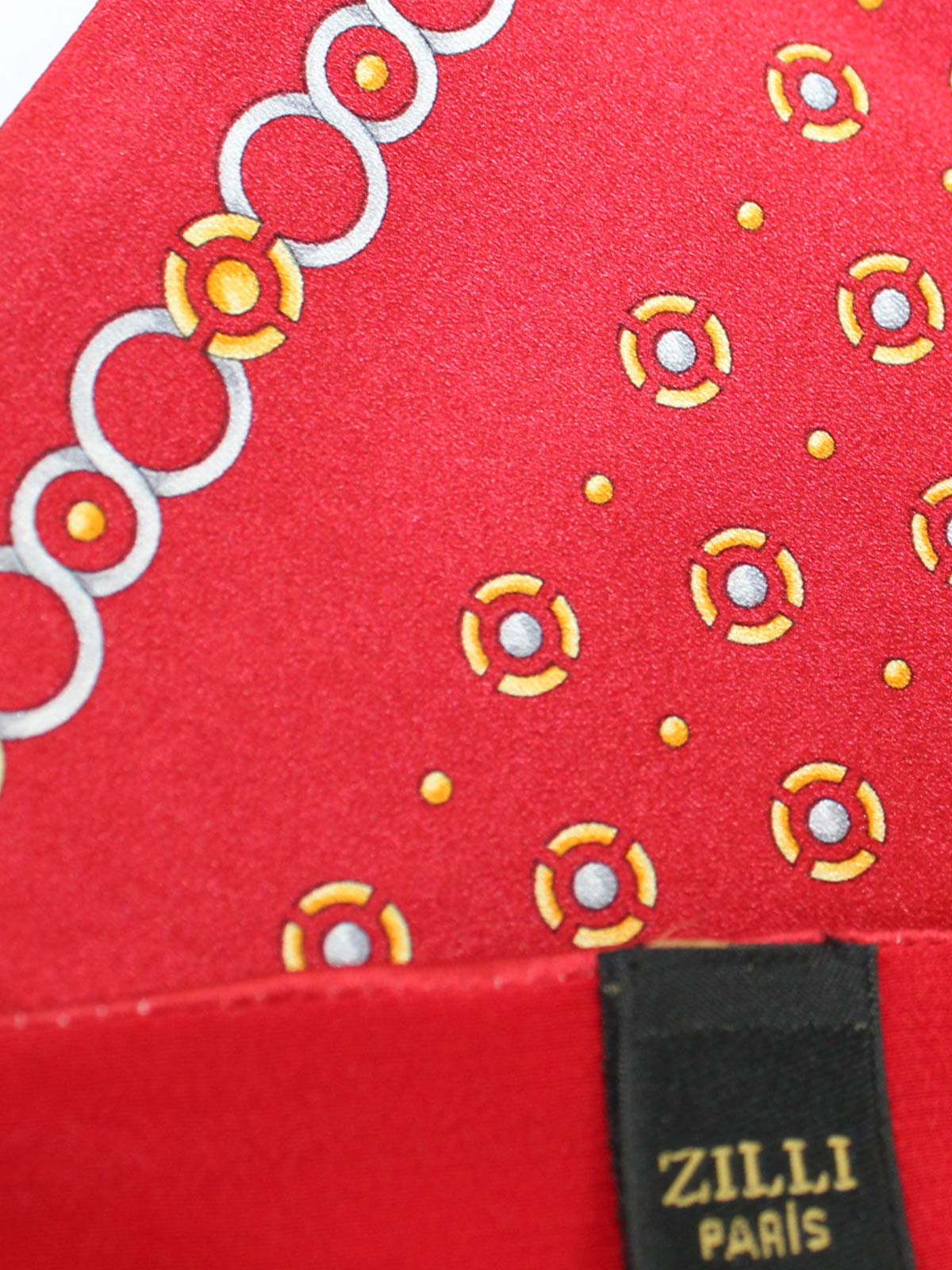 SALE - Authentic Zilli pocket square, red logo design, silk, hand made in Italy. Zilli Paris, luxury men accessories at outlet prices.