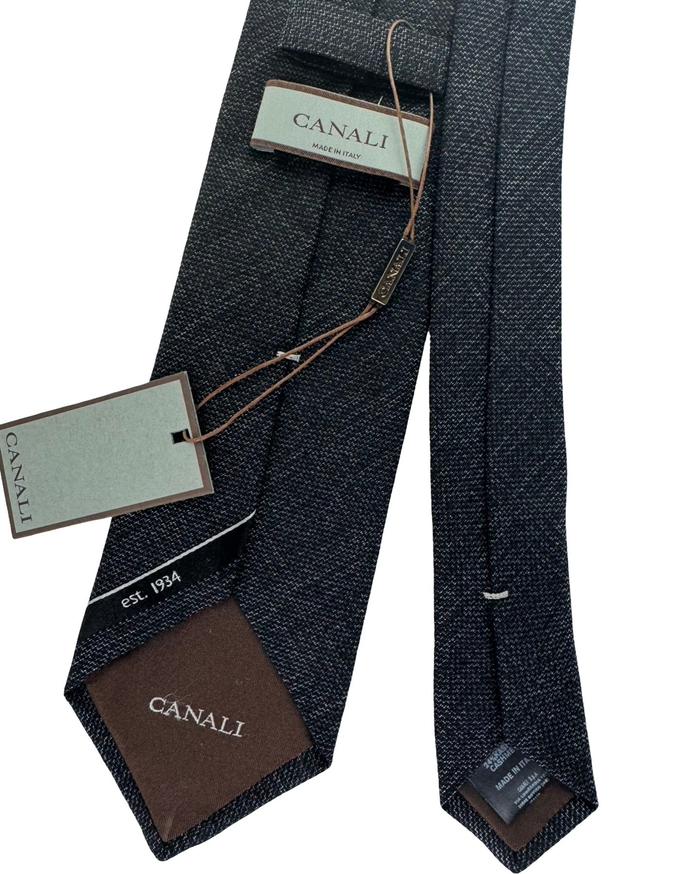 Genuine Canali tie, black silver with Canali logo, jacquard silk, hand made in Italy. Authentic Canali men accessories, classic Italian, timeless elegance.