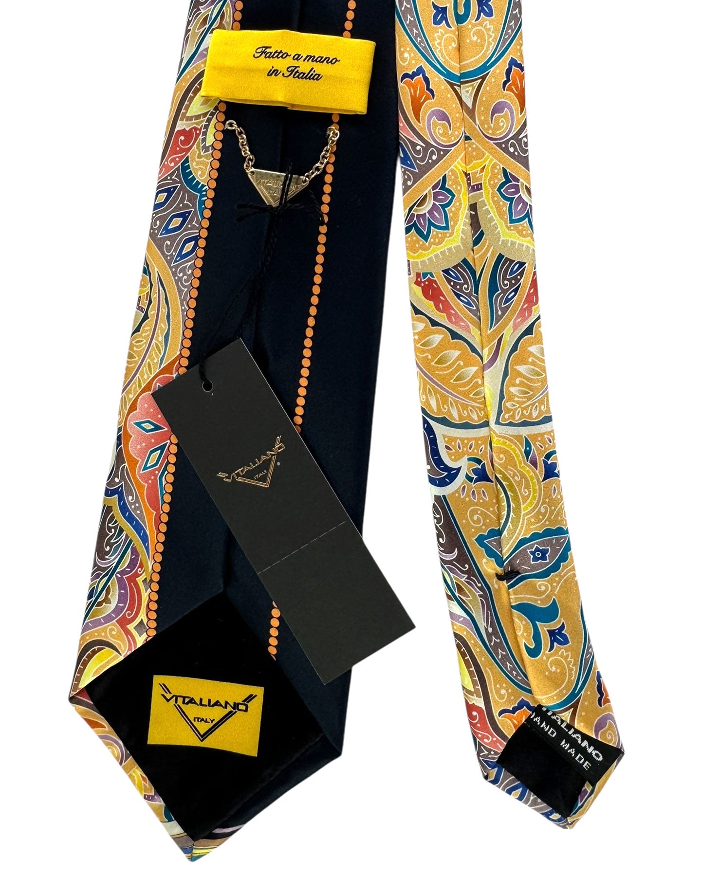 The Vitaliano Pancaldi Signature collection: hand made ties in silk satin printed with exclusive Vitaliano designs. Since 1947 every Vitaliano tie is handmade in Italy by the best artisans using only high quality Italian silk.
